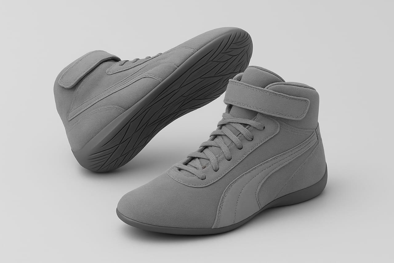 Lightweight racing shoes built for precision and comfort. Featuring a durable suede/synthetic leather upper, reinforced toe box, padded heel, and flat anti-slip rubber sole resistant to oil and fuel. High-top design with cushioned ankle support and secure lace-up + Velcro strap ensure maximum control. Optional breathable panels and customizable branding areas make them ideal for professional karting.